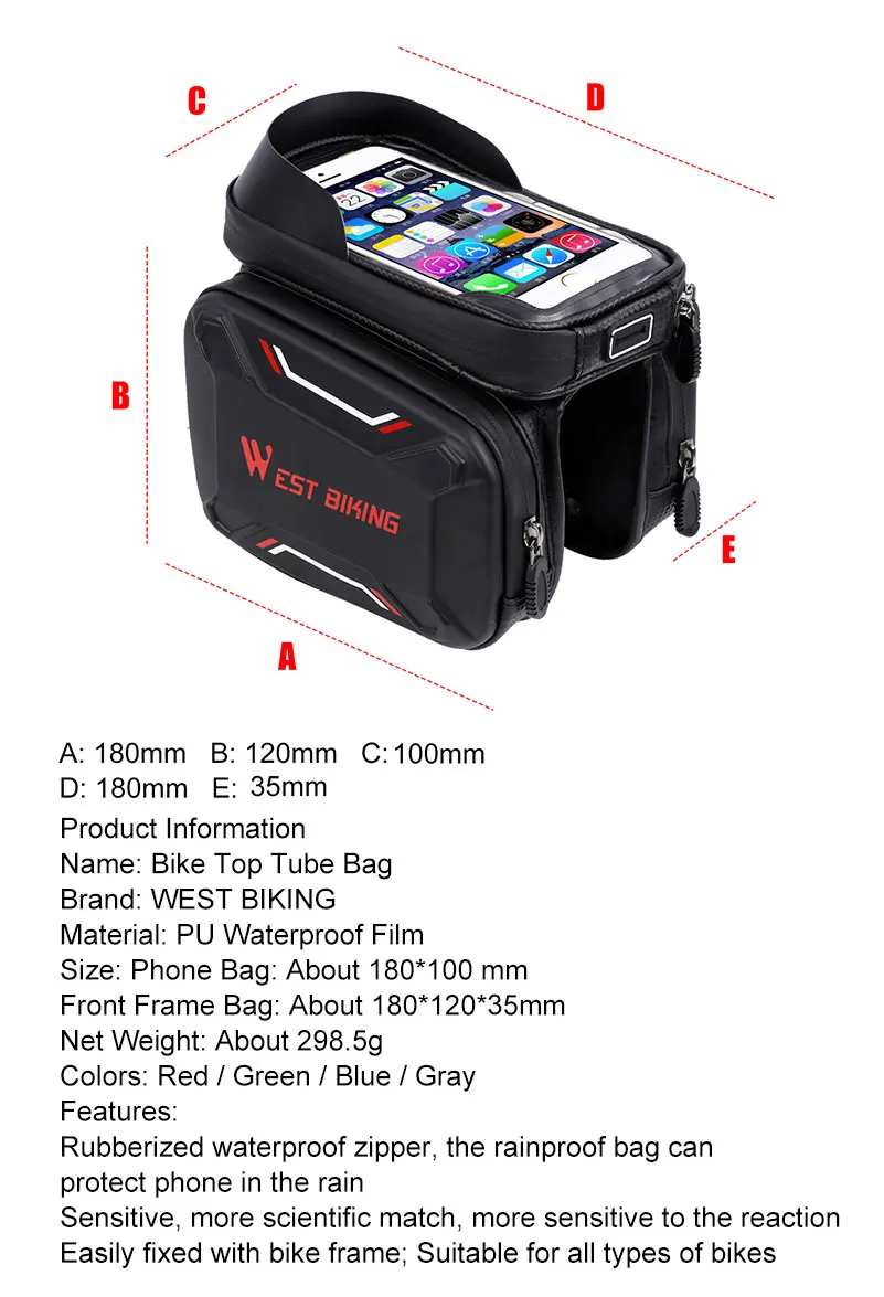 Cycling Phone Bag Front Frame MTB Bike Bag Waterproof Touch Screen Phone Case MT$25.27PriceColorSelectQuantity*Add to CartBuy Now